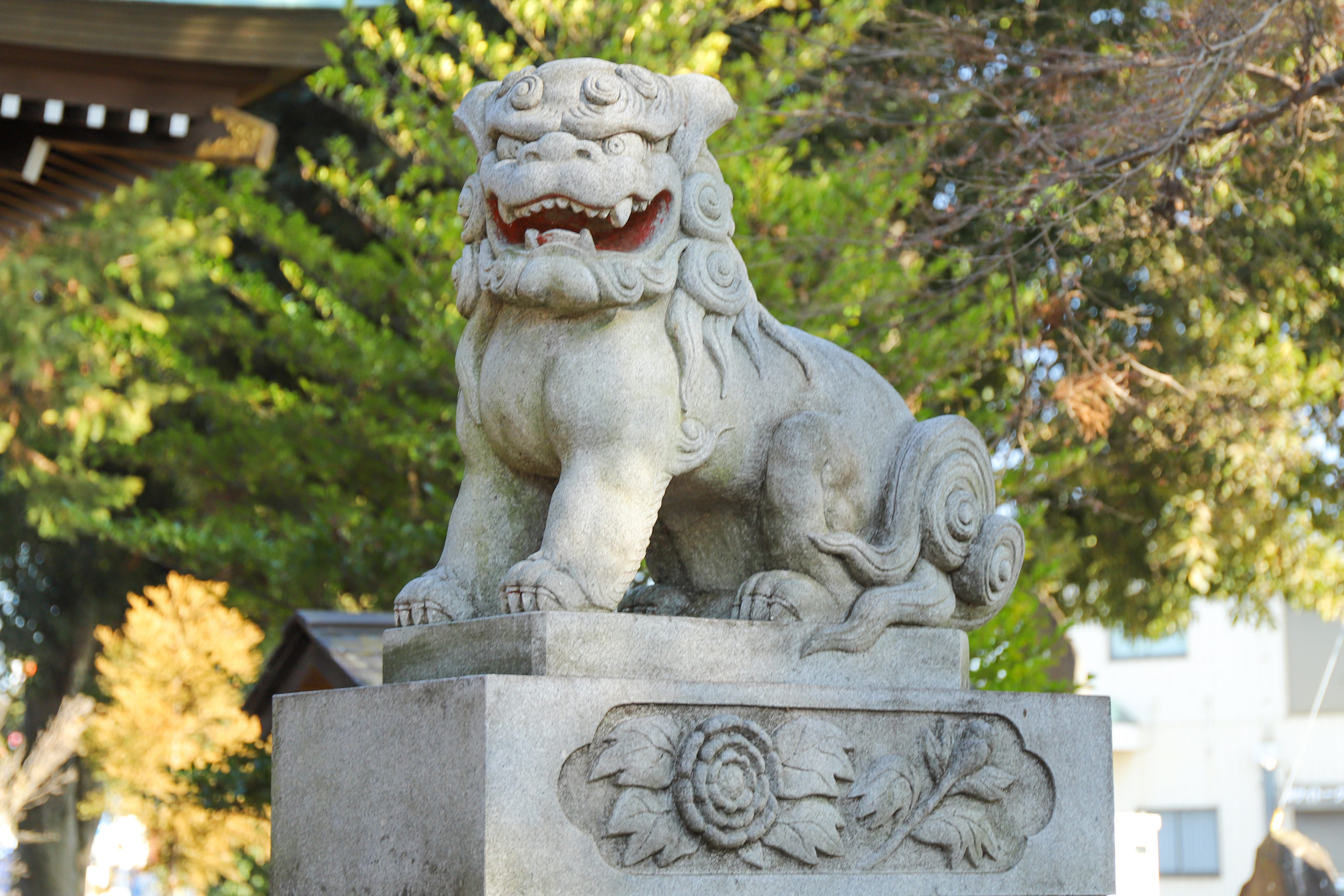 拝殿の前に狛犬がいます。