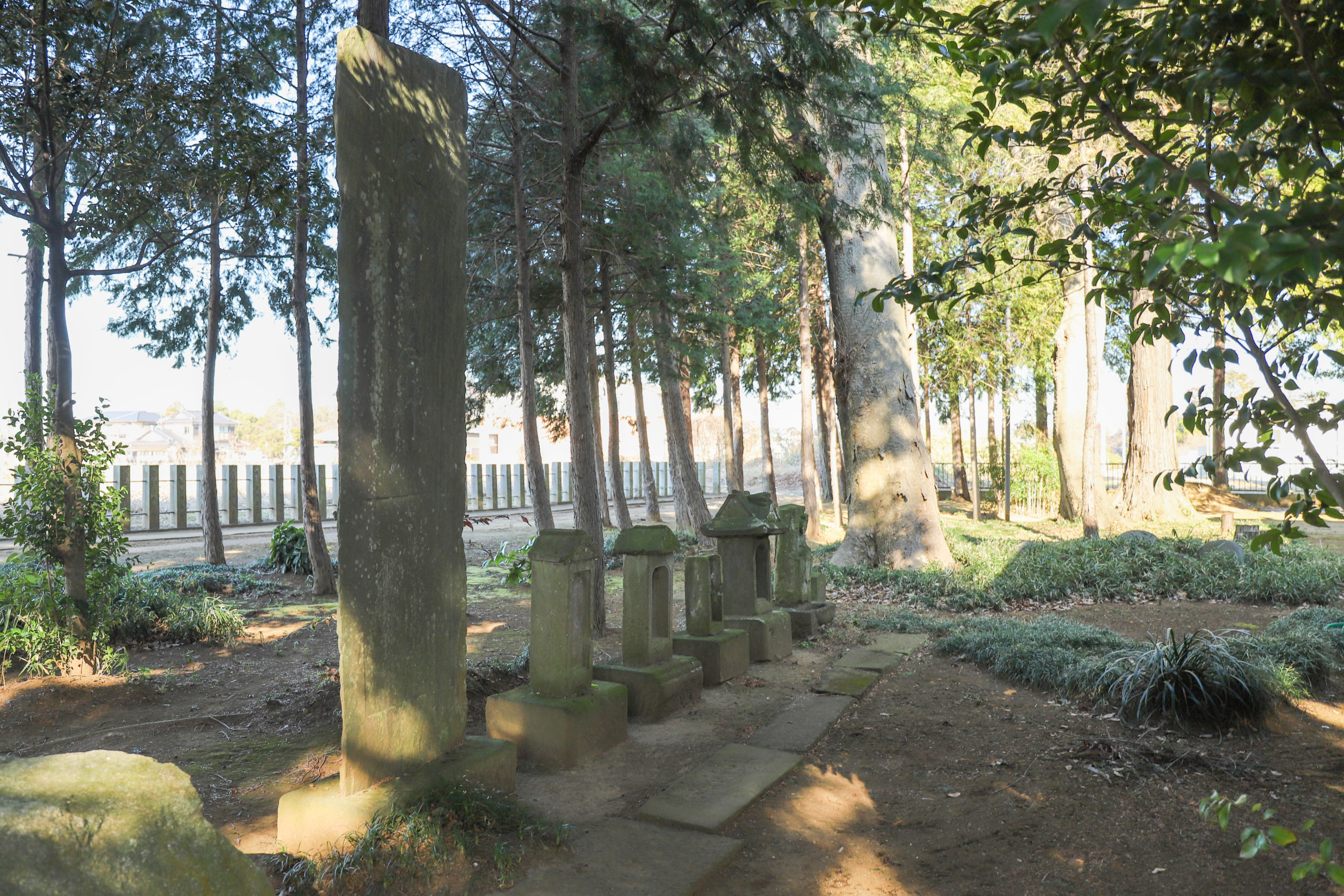 拝殿を左手奥へ進んだ先の景色。石碑などが並んでいます。