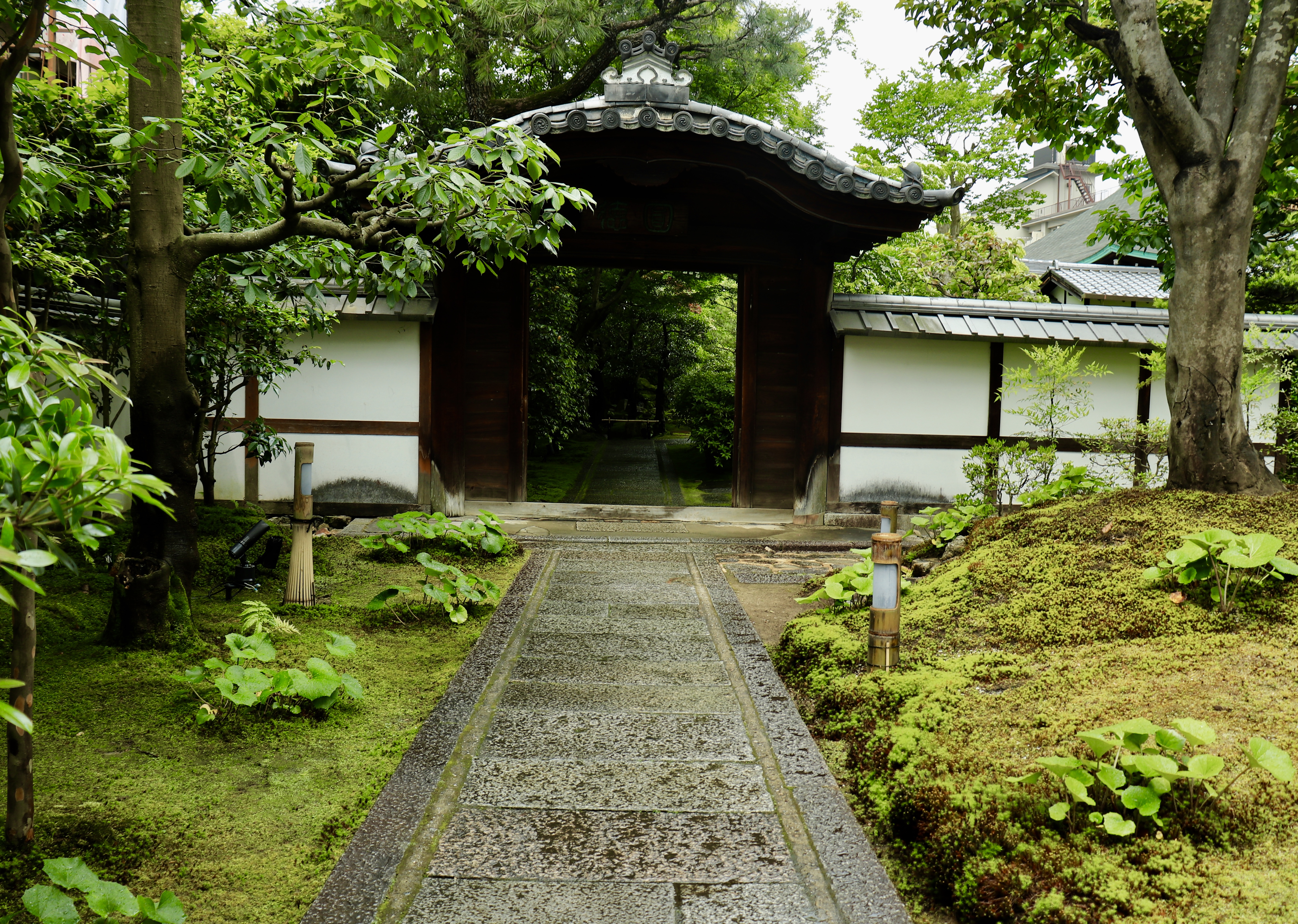 曇りの日でしたが、打ち水がされていたので、涼しさを感じました。石畳の濡れている様子が、なんだか素敵ですね。