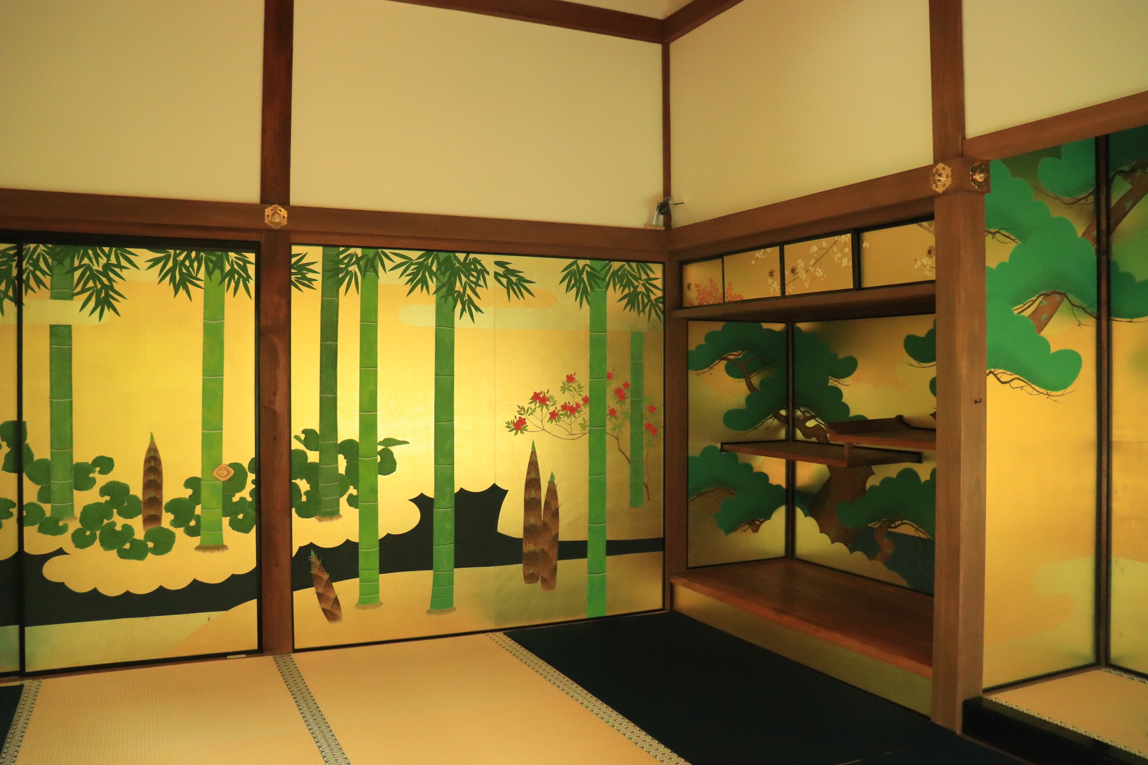 襖だけでなく、壁に描かれた絵は、松竹梅の図